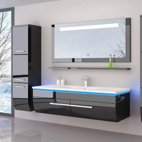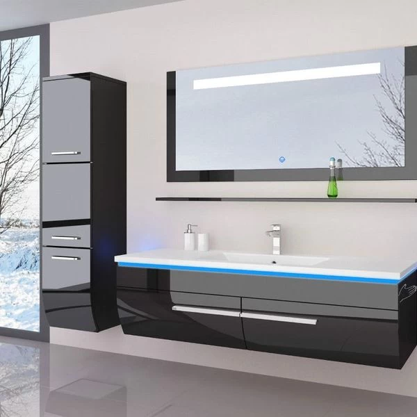 120 Cm Badmöbel Set Schwarz Hochglanz LED Badezimmermöbel Komplett Badezimmer 120 Cm