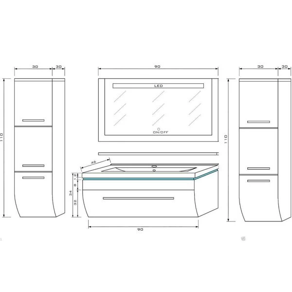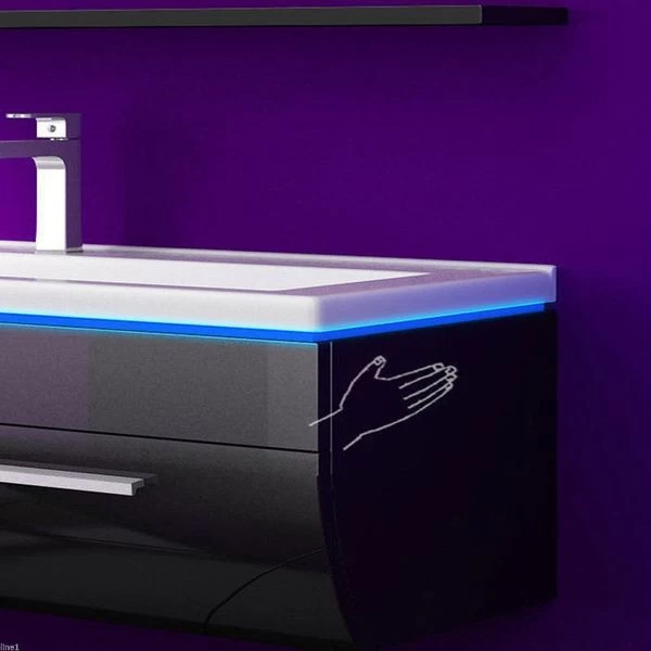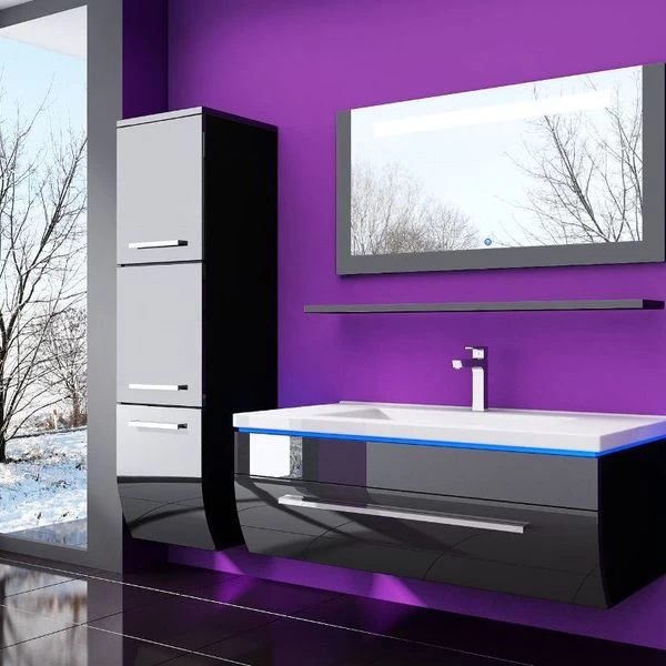 90 Badmöbel Set Schwarz Bad Komplett Hochglanz Badezimmermöbel Bis 6Tlg LED Bad 90 Cm