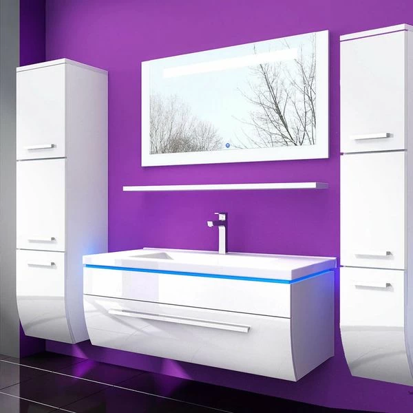 | Farbe | Schwarz, Weiß, Ohne Hochschrank, 1x Hochschrank, 2x Hochschrank, Hochglanz, Hochglanz, Mit LED system, Mit LED system, Montiert geliefert, Montiert geliefert |