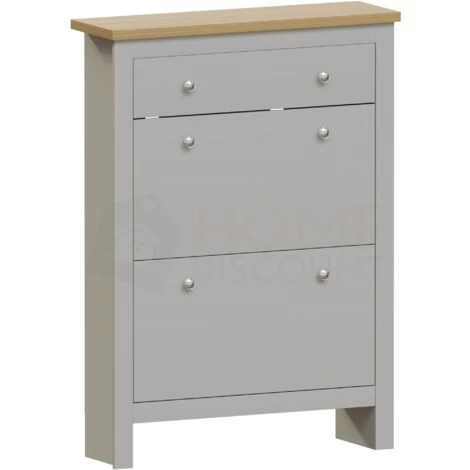 Home Discount bietet dieses beeindruckende neue Produkt mit einem modernen und stilvollen Design, den Arlington Schuhschrank. Er ist aus hochwertigem Spanplatten und MDF gebaut und wurde in einer neutralen Farbe gestrichen und mit einer Melamin-Furnier-Eiche-Effekt-Tischplatte und verchromten Griffen kombiniert. Der Schuhschrank verfügt über zwei herausziehbare Schubladen, in die Sie Ihre Schuhe einschieben können – ob High Heels, Turnschuhe oder Flats. Ebenso nützlich im Flur wie im Schlafzimmer oder Wohnzimmer, passt sein subtiler, moderner Design zu jeder Einrichtung.