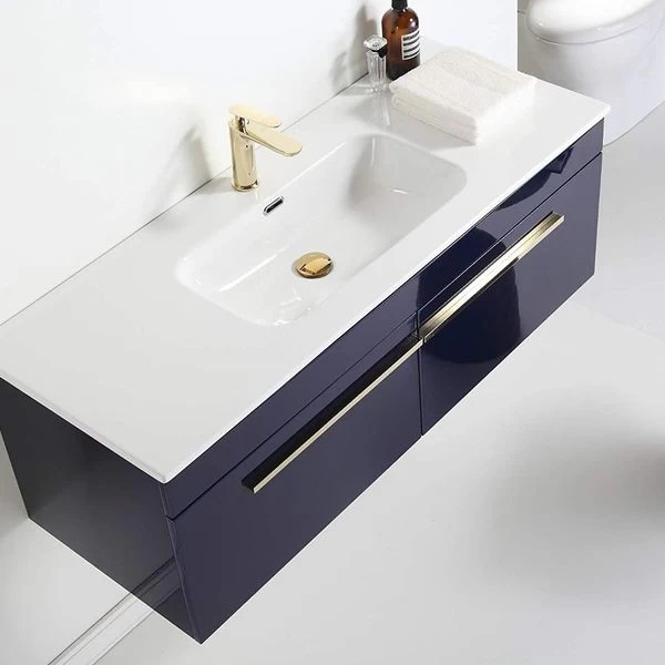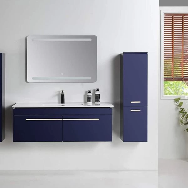 Badmöbel Set 5 Teilig 120 Cm Hochglanz Königsblau LED Spiegel Badezimmer Waschtisch
