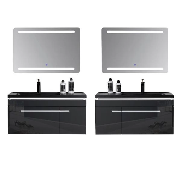 Preisgarantie Deutscher Fachhändler Geprüfte Qualität – Produktspezifikationen Rarität Doppel Waschbecken Soft-Close-Mechanismus LED-Spiegel mit Touch-Funktion Badmöbel-Set komplett VORMONTIERT Hochglanz lackiert Aus hochwertigem MDF-HOLZ Sehr gutes Preis-Leistungsniveau Seitenschrank auswählbar (re