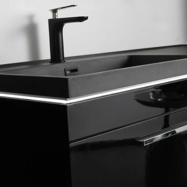 Badmöbel Set 8 Teilig 240cm Hochglanz Schwarz/ Weiß/ Königsblau LED Spiegel