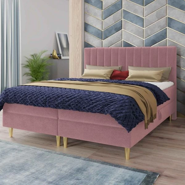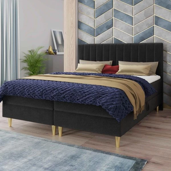 Bett Boxspringbett GOLD + 2 Bettkästen, Bettgestell, Polsterbett, Velours Stoff