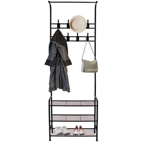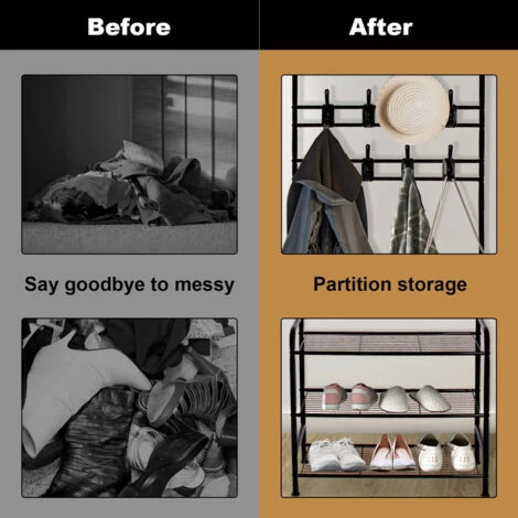 💗【Multifunktionale Garderobenständer】: Drei-in-Eins-Design aus Kleiderbügel, Schuhablage und Garderobe. Stabile Kleiderstange mit großem Fassungsvermögen für Mäntel, Schals und Mäntel. Die 16 abnehmbaren Kleiderhaken eignen sich zum Aufhängen von Gegenständen unterschiedlicher Größe wie Hüte, Kleidung, Taschen usw.; das 3-lagige Schuhregal kann Ihre Schuhe aufbewahren.