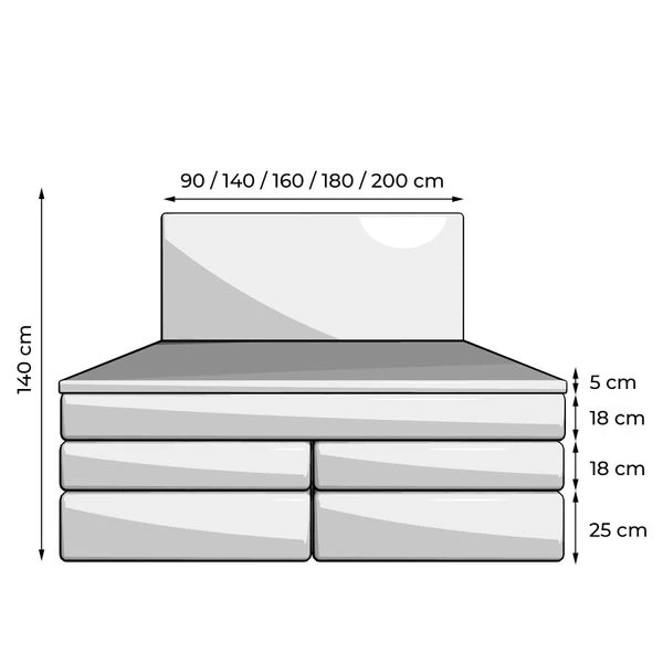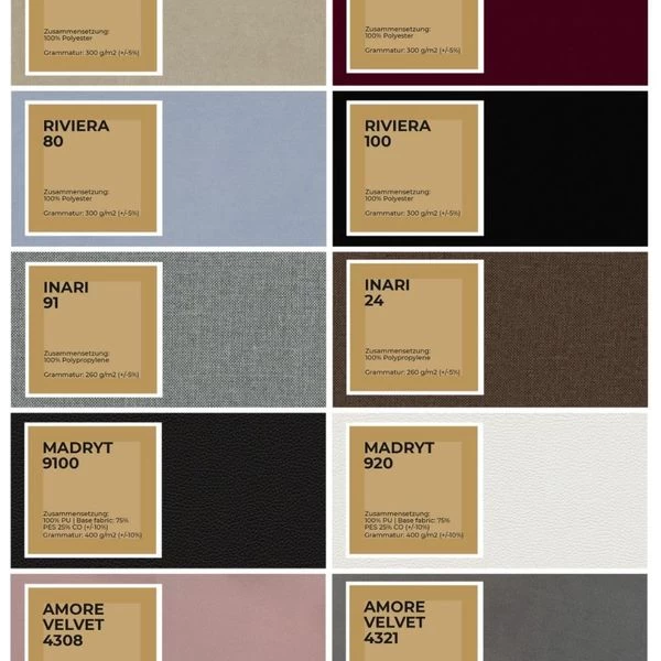 | Größe | 90×200 cm, 140×200 cm, 160×200 cm, 180×200 cm, 200×200 cm, Inari 24, Inari 91, Madryt Weiß, Madryt Schwarz, Riviera 21, Riviera 38, Riviera 59, Riviera 80, Riviera 81, Riviera 100, Sawana 05, Amore Velvet 4308, Amore Velvet 4321, mit Knöpfen, mit Strasssteinen, ohne Montage, mit Montage |