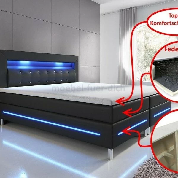 Boxspringbett Salerno Mit LED In Seiten- Fuß- Und Kopfteil Schwarz Oder Weiß