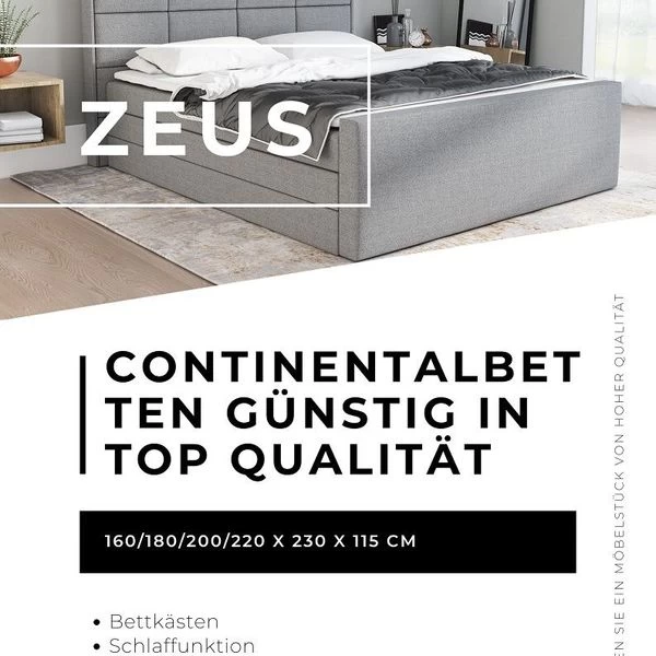 Schnelle Lieferung ! GROßE Farbenauswahl ! TOP Hersteller ! – Sie Suchen ein bequemes, praktisches und stilvolles Bett für Ihr neues SchlafzimmerEuro Dann werfen Sie einen Blick auf das einzigartige Boxspringbett ZEUS! Das Boxspringbett zeichnet sich durch sein erhöhten Bedienkomfort aus. Eine stark