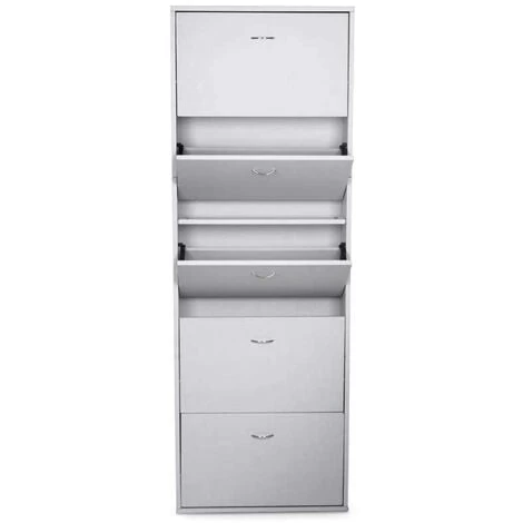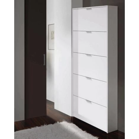 AUFBAU UND VERWENDUNG – Moderner und platzsparender Schuhschrank mit fünf Klapptüren – Im Inneren können bis zu 15 Paar Schuhe dank der Struktur mit hohem Fassungsvermögen aufbewahrt werden – Elegantes und funktionales Einrichtungsstück, perfekt für den Eingang, Flur, Wäsche Zimmer, Badezimmer, Hauswirtschaftsraum, Garage, Schlafzimmer, Balkon, Terrasse oder Eingang.