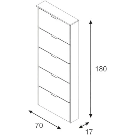 ABMESSUNGEN IN CM – Schuhregal: Länge: 70 Breite: 17 Höhe: 181