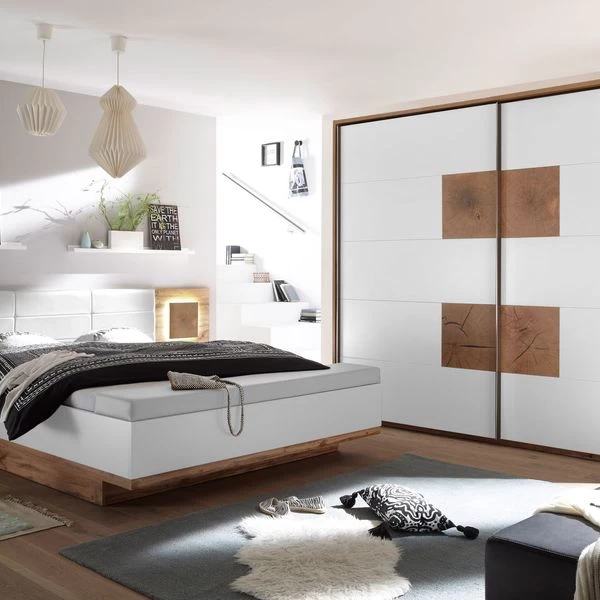 Doppelbett Nachtkommoden CAPRI XL Bett Ehebett Fussbank 180×200 Weiß Eiche