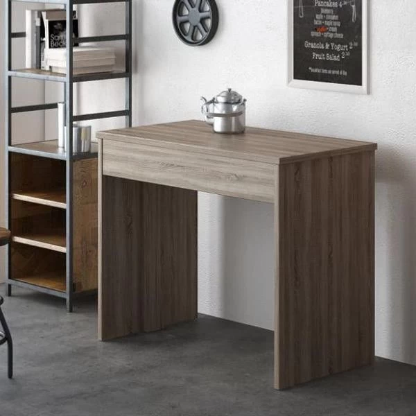 Maße des geschlossenen Tisches: 49 cm (Breite) x 90 cm (Höhe) x 75 cm Tiefe Innenveredelung aus Melamin in dunkler Eiche von hoher Qualität, hergestellt aus einer agglomerierten Platte mit einer außergewöhnlichen Dicke von 22 mm. Ausziehbare Stahlschienen mit hoher Tragfähigkeit Vielseitige und mult