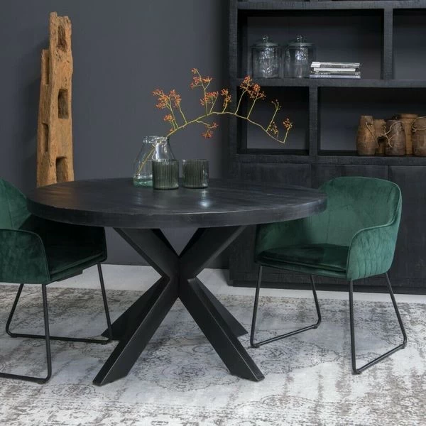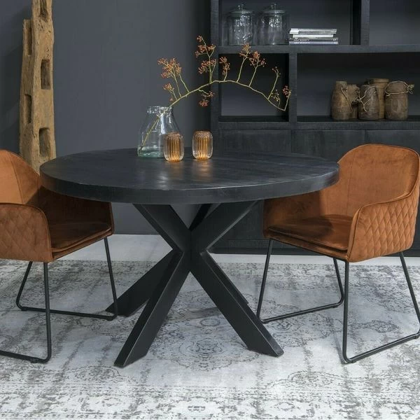Esszimmertisch Küchentisch Tisch Kala Schwarz Spider Rund Mango Stahl 130 Cm