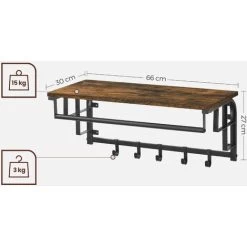 VASAGLE Wandgarderobe Mit Ablage, Wandregal, Mit 5 Abnehmbaren Haken, LCR12BX Von SONGMICS