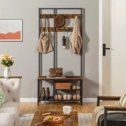 Garderobenständer Bambus, Freistehender Kleiderständer, Garderobe In Baumform, Mit 10 Haken/3 Ablgen