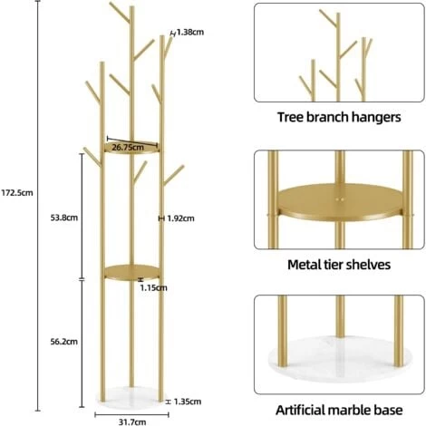 Hochwertiges Material: Die Konstruktion des Garderobenständers ist aus Metalleisen und Kunstmarmor, die umweltfreundlich, sicher und zuverlässig ist. Die Feinpoliertechnologie gibt Ihnen glatte Kleiderbügel, sie werden Ihrer Kleidung nicht schaden. Der Ständer hält Ihr Haus sauber, ohne überall Kleidung durcheinander zu bringen