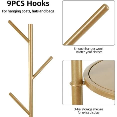 Mit 3 Ablage Regal: Es gibt 3 Ablage an der Unterseite des Garderobenständers, darauf können Sie kleine Gegenstände platzieren. Der Garderobenständer ist einfach aufzubauen.