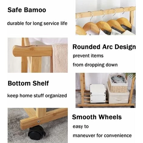 Hochwertiges Material: Die Konstruktion des Garderobenständers ist aus Bambus, stabil und robust. Mit einer maximalen Tragfähigkeit von 60 kg kann er problemlos alle Ihre Kleidungsstücke aufnehmen