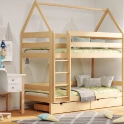 Hochbett Hausbett Stockbett Etagenbett Home 100%Massivholz 200×90