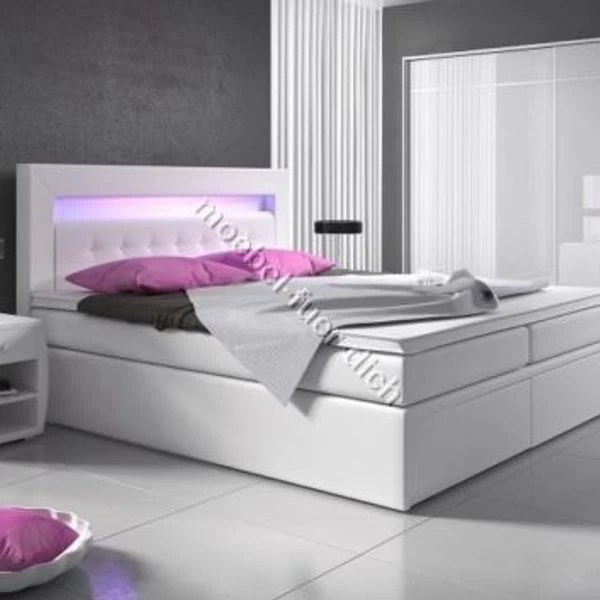 Hochglanz-Schlafzimmer Mit Boxspringbett Milano2 Mit 2 Bettkästen Weiß / Schwarz