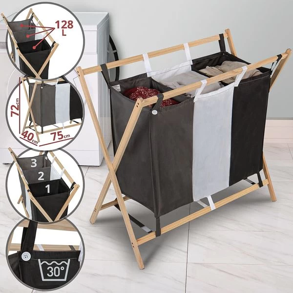 Jago® Wäschesortierer 3 Fächer Holz Wäschekorb Wäschebox Wäschesammler
