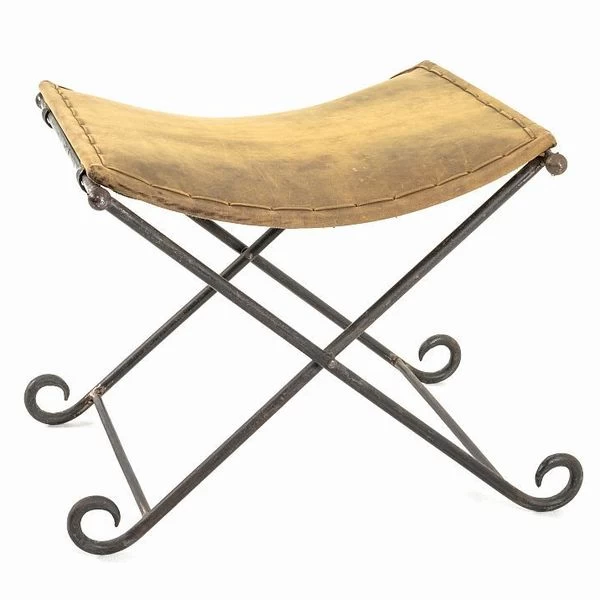 Klapphocker – Gestell aus Stahlrohr Roheisen – Sitzfläche aus Echt Leder gepolstert – klappbar – Leder ist ein Naturprodukt – Farbabweichungen möglich ca.Maße: Sitzhöhe: 58 cm Breite: 49 cm Höhe: 50 cm Belastbar max. 80kg Lieferung ohne Dekoartikel.
