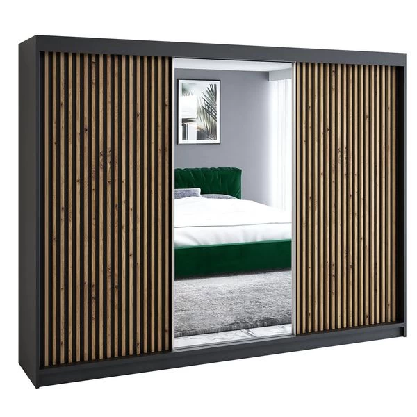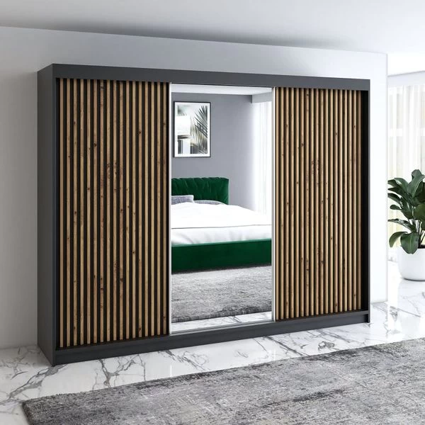 ! Nur Bestellungen, die bis zum letzten Tag im Oktober eingehen, werden garantiert bis Weihnachten geliefert ! Kleiderschrank NIRO Spezifikation markante senkrechte Lamellen an der Tür lassen den Schrank ungewöhnlich stilvoll und modern wirken großer Spiegel an der Tür vergrößert optisch den Raum 4x