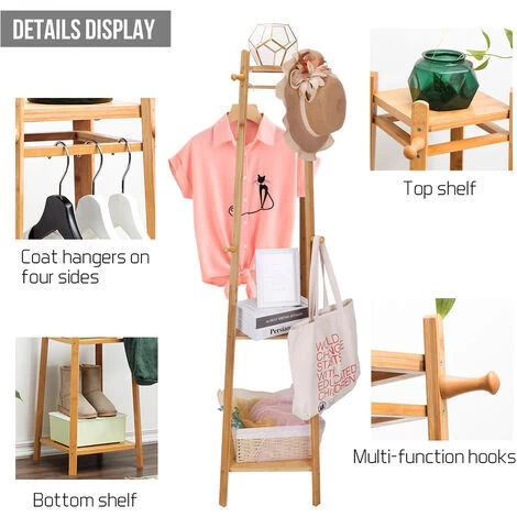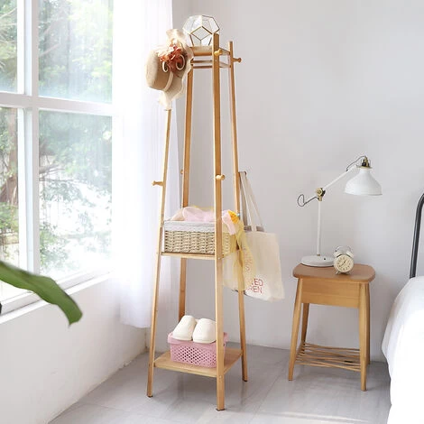Moderner Garderobenständer: Kleiderständer sind überaus praktisch und bieten Ihnen zusätzlich Platz, um Kleidungsstücke ordentlich aufzuhängen.Das Material Holz versprüht einen wohnlichen Charakter und fügt sich angenehm in unterschiedliche Wohnkonzepte ein.passt überall hin, egal ob im Eingang, Flur, Schlafzimmer, Wohnzimmer oder im Büro, Hotel, Gasthaus usw.