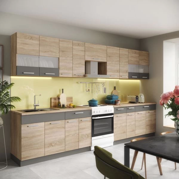 Küche ALINA 350 Cm Küchenzeile Einbauküche Küchenblock Sonoma Eiche
