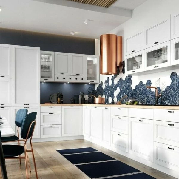 Küche Eckküche Ostsee Traumküche Landhaus – Soft Close – Markenküche Weiß Matt Holz