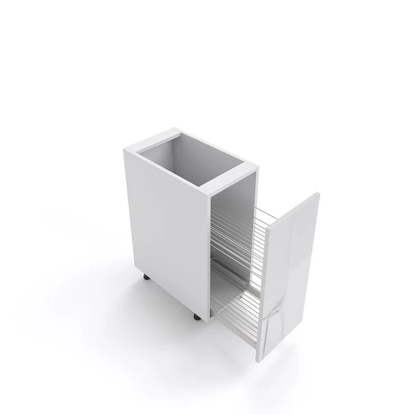 Küchen Unterschrank Eintürig mit Korb Korpus Weiß Matt Front: Glanz 15 – 60 cm Breite: 15 bis 60 cm Höhe: 82 cm (Höhe mit Beinen) Tiefe: 48 cm Schrank – Eintürig mit Korb Der Küchenschrank hat verstellbareBeine, hohe Füße ca. 10cm + ;- 2cm verstellbar. Kanten mit ABS-Kante bedeckt. Hochglänzende Bau