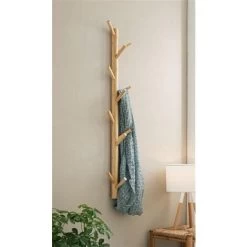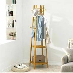 Garderobenständer Bambus, Freistehender Kleiderständer, Garderobe In Baumform, Mit 10 Haken/3 Ablgen