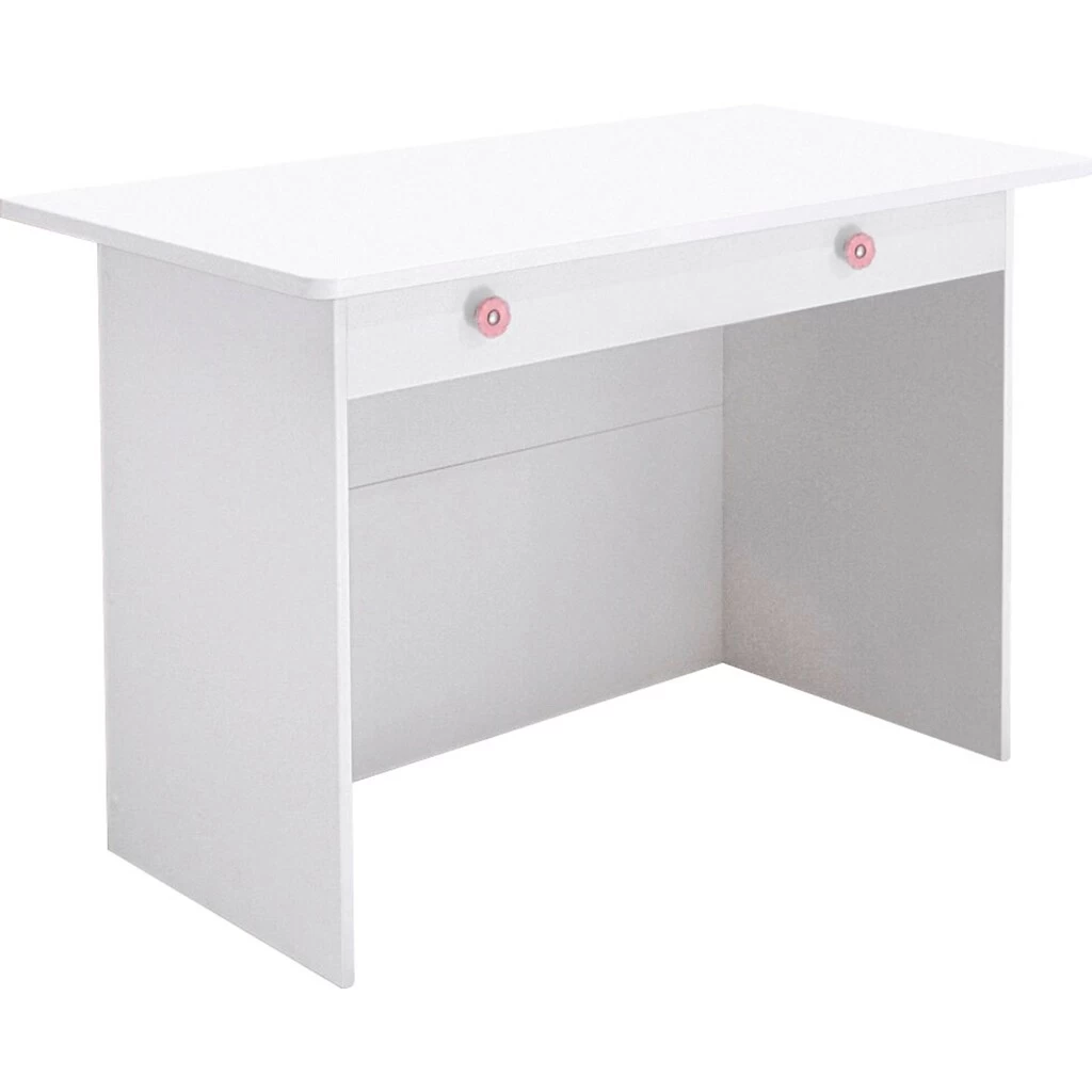 | Wissenswertes | Die Oberflächen sind pflegeleicht in Weiß beschichtet. Mit rosafarbenen Blümchengriffen. Innendekor Leinenoptik sandfarben. |