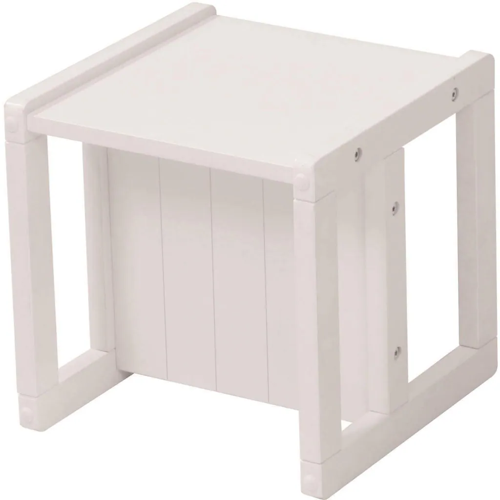 Roba, Sitzhocker – Weiß.Der Sitzhocker von Roba passt mit seinem Design in Weiß und Fräsungen in jedes Kinderzimmer. Er bietet Ihrem Schatz verschiedene Verwendungsmöglichkeiten – am Schreibtisch oder als Ruhemöbel. Durch Drehen des Hockers sind drei verschiedene Sitzpositionen möglich. Maße: 30/30/30 cm.Lieferumfang:Sitzhocker MDF, weiß lackiertSitzhöhe 14/18 oder 29 cmAltersempfehlung:Ab 12 MonatenWarnhinweise:Achtung! Die maximale Tragkraft beträgt 25 kg
