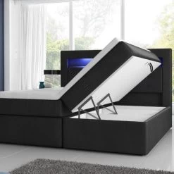 Hochglanz-Schlafzimmer Mit Boxspringbett Milano2 Mit 2 Bettkästen Weiß / Schwarz