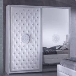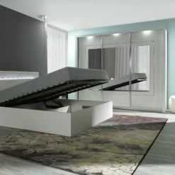 Schlafzimmer Komplett Weiß Hochglanz IRIS Set B Schwebetürenschrank Nakos LED