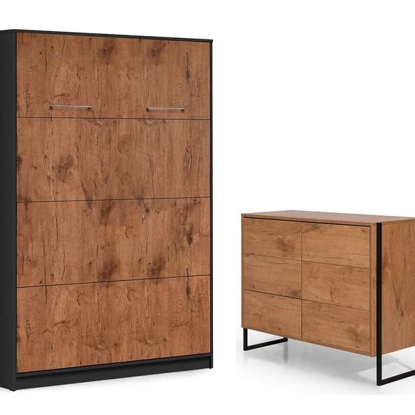 Schrankbett Wandbett Klappbett Vertikal VB 90×200 Eiche Lancelot Kommode