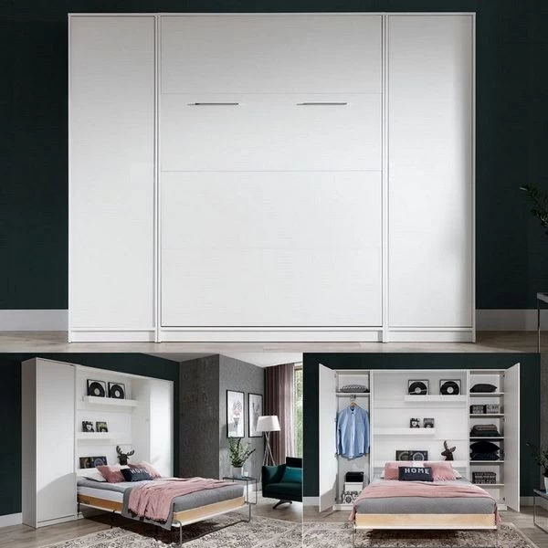 Schrankbett Wandbett Klappbett Vertikal VB90/120/140 X 200 Mit 2Schränken Weiß Sonoma