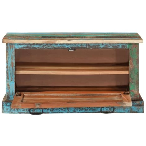 Aus Altholz gefertigt, ist diese Flurbank langlebig und wunderschön, und weist außerdem die Merkmale verschiedenster Holzarten wie Teakholz, Mangoholz, Akazie usw. auf. Jedes Möbelstück ist ein unverwechselbares Unikat. Gebrauchsspuren und die sichtbare Maserung verleihen jedem Stück ein einzigartiges Aussehen und tragen zum eindrucksvollen Vintage-Stil bei. Diese Bank mit Schuhablage ist komplett handgefertigt. Jeder Schritt des Fertigungsprozesses wurde mit größter Sorgfalt ausgeführt, sei es Polieren, Malen oder Lackieren. Dieses Produkt ist bereits montiert; kein Zusammenbau erforderlich.