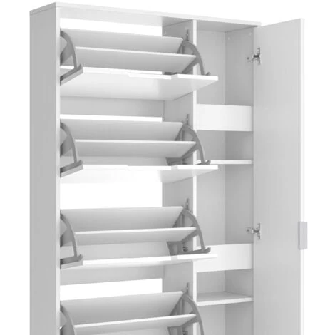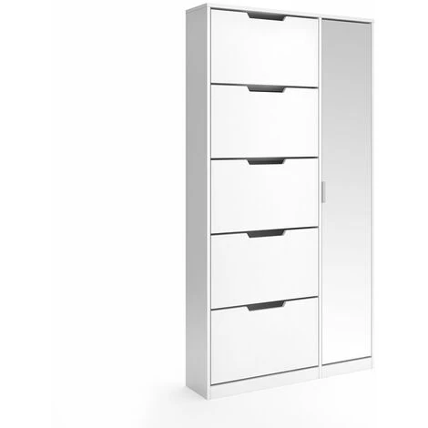 Auf kleinstem Raum können Sie mit unserem Schuhschrank Luca ein Maximum an Schuhen aufbewahren was ihn für sehr kleine und schmale Flure bestens eignet. Die praktischen Klappen sind mit einem intuitiven Schließmechanismus ausgestattet. Der integrierte Spiegelschrank bietet Ihnen die Möglichkeit, ihr Gesamtoutfit zu bestaunen und hinter seiner Tür den weiteren Stauraum zu nutzen.