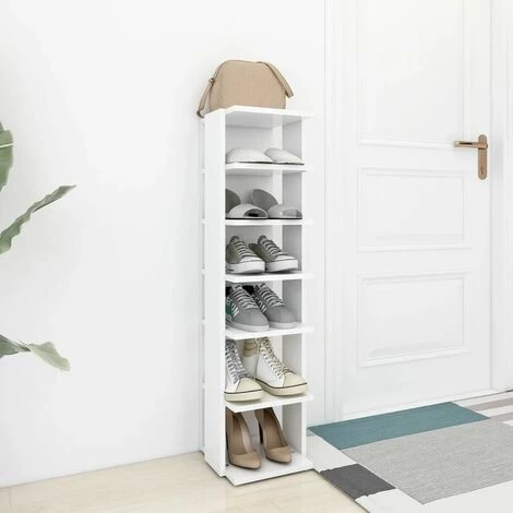 In diesem eleganten Schuhschrank lassen sich Ihre Schuhe ganz ordentlich aufbewahren, um für ein aufgeräumtes Wohnumfeld zu sorgen! Aus qualitativ hochwertiger Spanplatte gefertigt, weist dieser Schuhschrank eine elegante Optik auf und ist außerdem stabil und langlebig. Der Hochschrank nimmt nur wenig Platz ein und lässt sich daher in einer engen Ecke wie unter der Treppe perfekt platzieren. Mit 6 Fächern bietet es reichlich Stauraum für viele Schuhe.