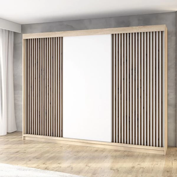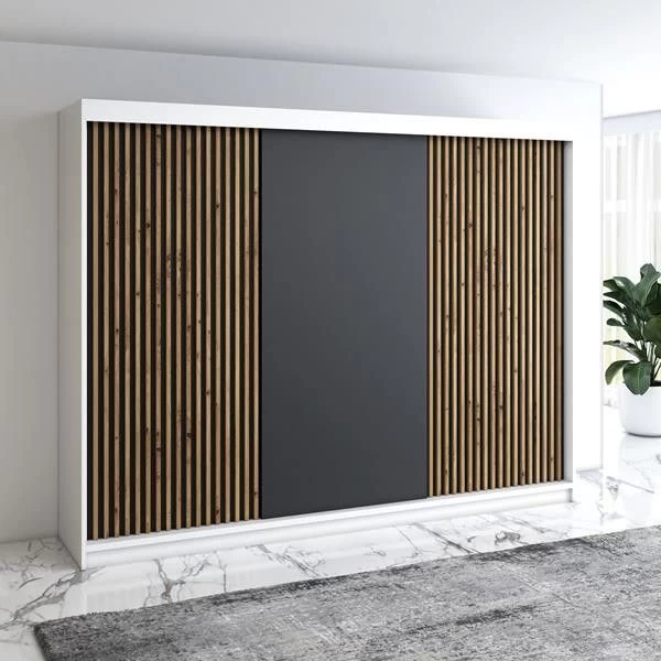 Schreibe die erste Rezension für „Schwebetürenschrank, 3-türig Schrank 200 Cm Mit 4 Schubladen, Und 3D-Lamellen- IOSA“ Antwort abbrechen