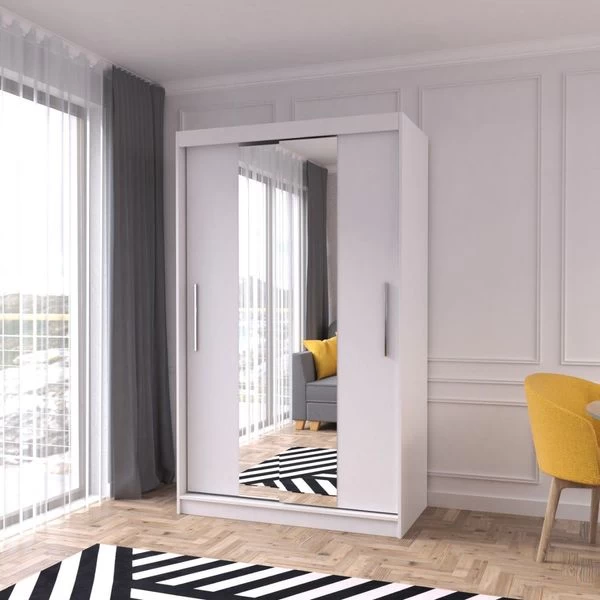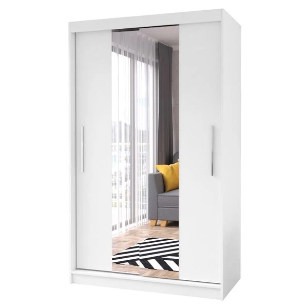 120 cm x 200 cm x 61 cm – Schrank LEOMI 01 TECHNISCHE DATEN MAßE Breite: 120 cm Höhe: 200 cm Tiefe: 61 cm DETAILS Kleiderstange und Einlegeböden, hochwertige Laminatplatte 16 mm, ABS Kante, PCV-Griffe, mit Spiegel und ohne Zierleisten. FARBE Die Farbe der Möbel kann, abhängig von den Einstellngen de