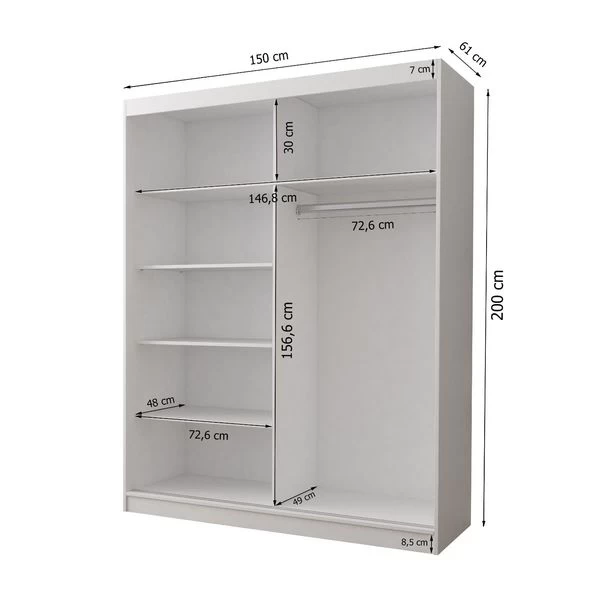 Wohnzimmer Jugendzimmer Schlafzimmer Polstermöbel Schränke Schrank Vista 05 MIT aUFSATZ Abmessungen: Breite: 150 cm, Höhe: 245 cm, Tiefe: 61 cm Details: Kleiderstange und Einlegeböden, hochwertige Laminatplatte 16 mm, ABS Kante, Aluminium Führungen, Spiegel aus Front. Die dekorative Leisten sind ein
