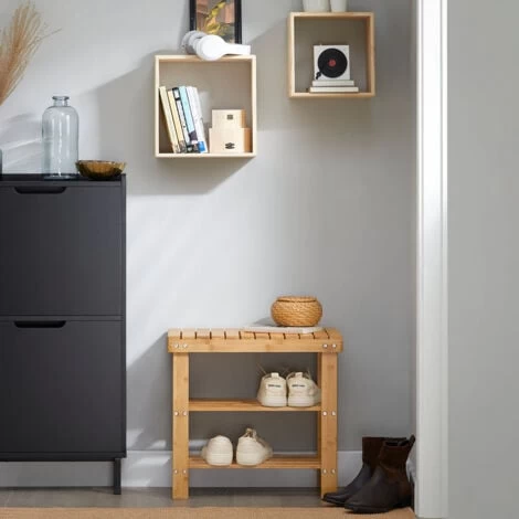 Praktisches und dekoratives Schuhregal aus Bambus mit 2 Tagen.