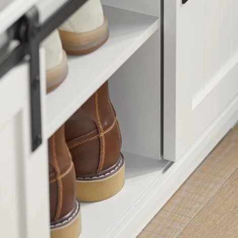 - Dos estantes brindan un amplio espacio de almacenamiento para guardar sus zapatos.Este banco te permite optimizar el espacio de almacenamiento y, en última instancia, ahorrar espacio.