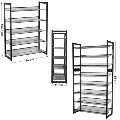 4. Hochwertige Materialien – Die Schuhablage besteht aus Eisenrohren und einem Metallgewebe. Langlebig und rostbeständig bieten die Materialen einen edlen Look und eine lange Lebensdauer.