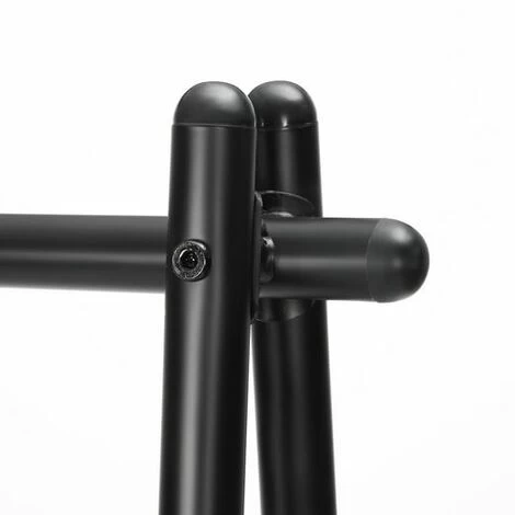 Gitterablage im unteren BereichDie Gitterablage ist mit einer Kunststoffplatte ausgestattet, sodass auch kleine Gegenstände hierauf platziert werden können, ohne herabzufallen. | Seitenrahmen in A-FormStilvolles Aussehen, stabile Struktur – Dieser Garderobenständer ist stark, robust und hält eine große Sammlung von Kleidungsstücken problemlos aus. | Einfache MontageDank der geringen Anzahl an Einzelteilen und der simplen Struktur können Sie diesen Kleiderständer im Handumdrehen aufbauen. |
