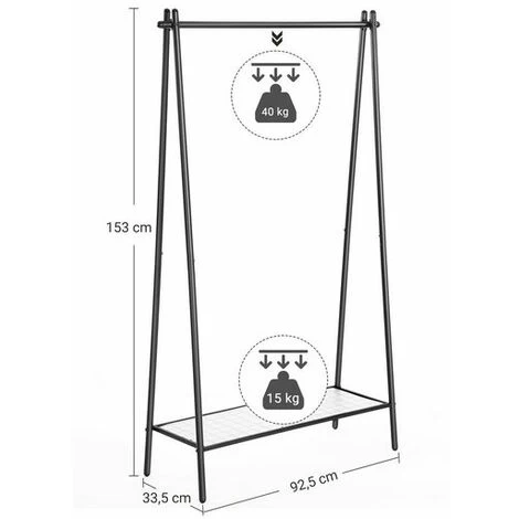 - STABIL & BELASTBAR: Robuster Stahl, stabile Seitenrahmen in A-Form – Dieser Kleiderständer besticht durch eine gute Belastbarkeit. Sie können Ihre Jacken, Röcke sowie Hosen (bis 40 kg) an der Kleiderstange aufhängen und Schuhe sowie Boxen (bis 15 kg) auf der Ablage platzieren