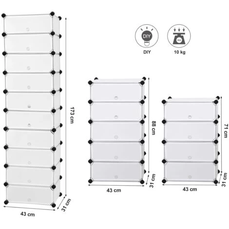 - Viel Stauraum – Fachmaße des Schuhschrankes: 40 x 17 x 30 cm (B x H x T); Kapazität jedes Faches: 26,8 L; gesamte Kapazität (10 x Fach): 268 L. Sorgt für praktische Aufbewahrung von Schuhen, Kleidung oder Spielzeug, ein „tüchtiger Assistent“ Ihrer Familie